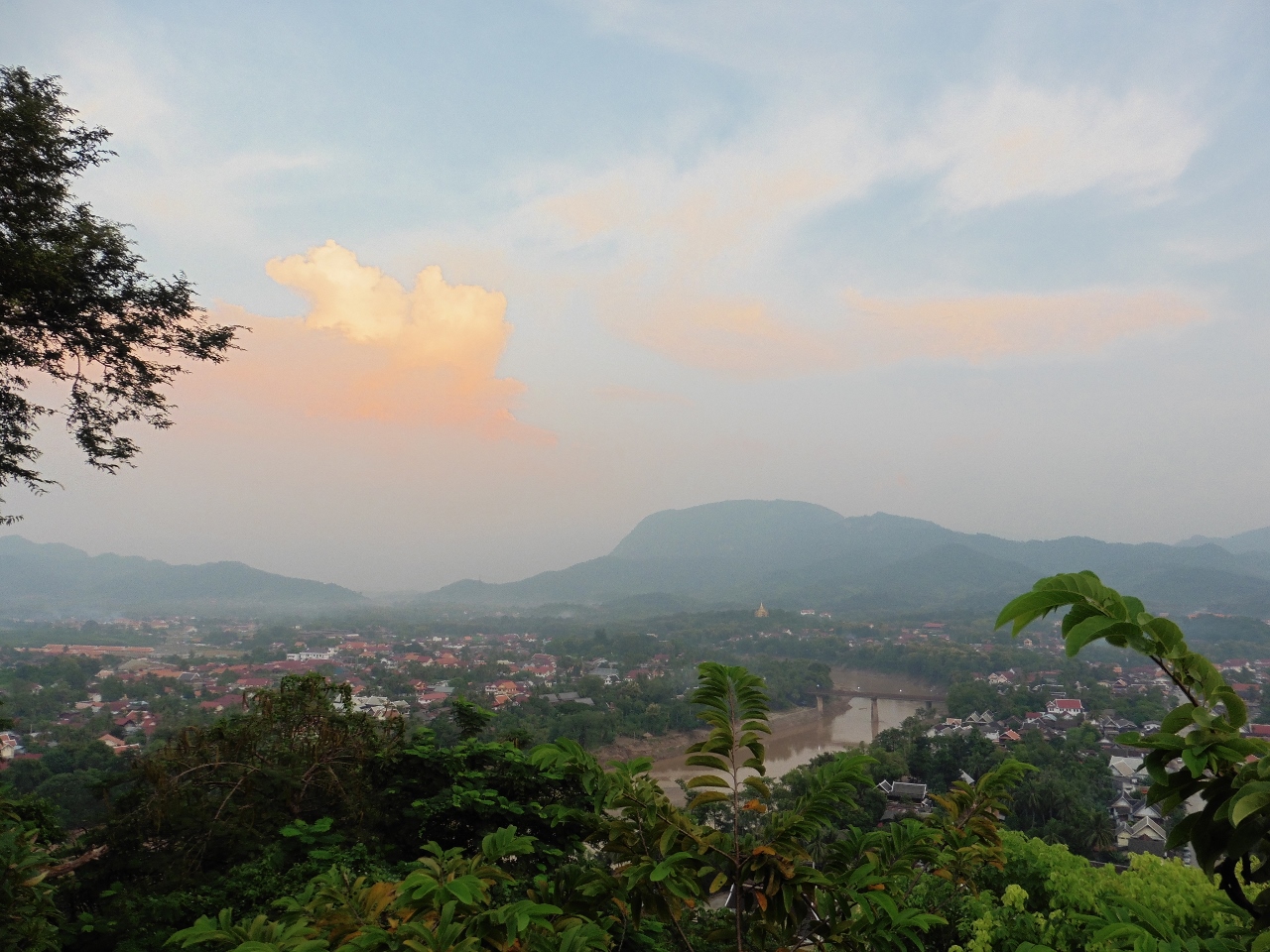 Luang Prabang ist das touristische Herz von Laos und wurde uns von vielen Seiten als DAS HIGHLIGHT von Laos angepriesen. Die Leser eines englischen Reisemagazins wählen es wohl regelmäßig zum lohnendsten Städtereiseziel weltweit. Dementsprechend setzten wir uns voller Vorfreude in den gebuchten Mini-Van um in 7(!!!) Stunden die 350km von Luang Namtha nach Luang Prabang zu überbrücken. Nur ein Tipp: Nehmt NIE einen Mini-Van für eine Strecke von über 2 Stunden. Die Dinger sind unbequemer wie jeder noch so schlechte Bus. Kerstin bekam ausgerechnet an ihrem verletzten Bein eine leichte Schwellung am Fuß… Man muss allerdings auch sagen, dass die Landschaft teilweise wirklich schön war!!!