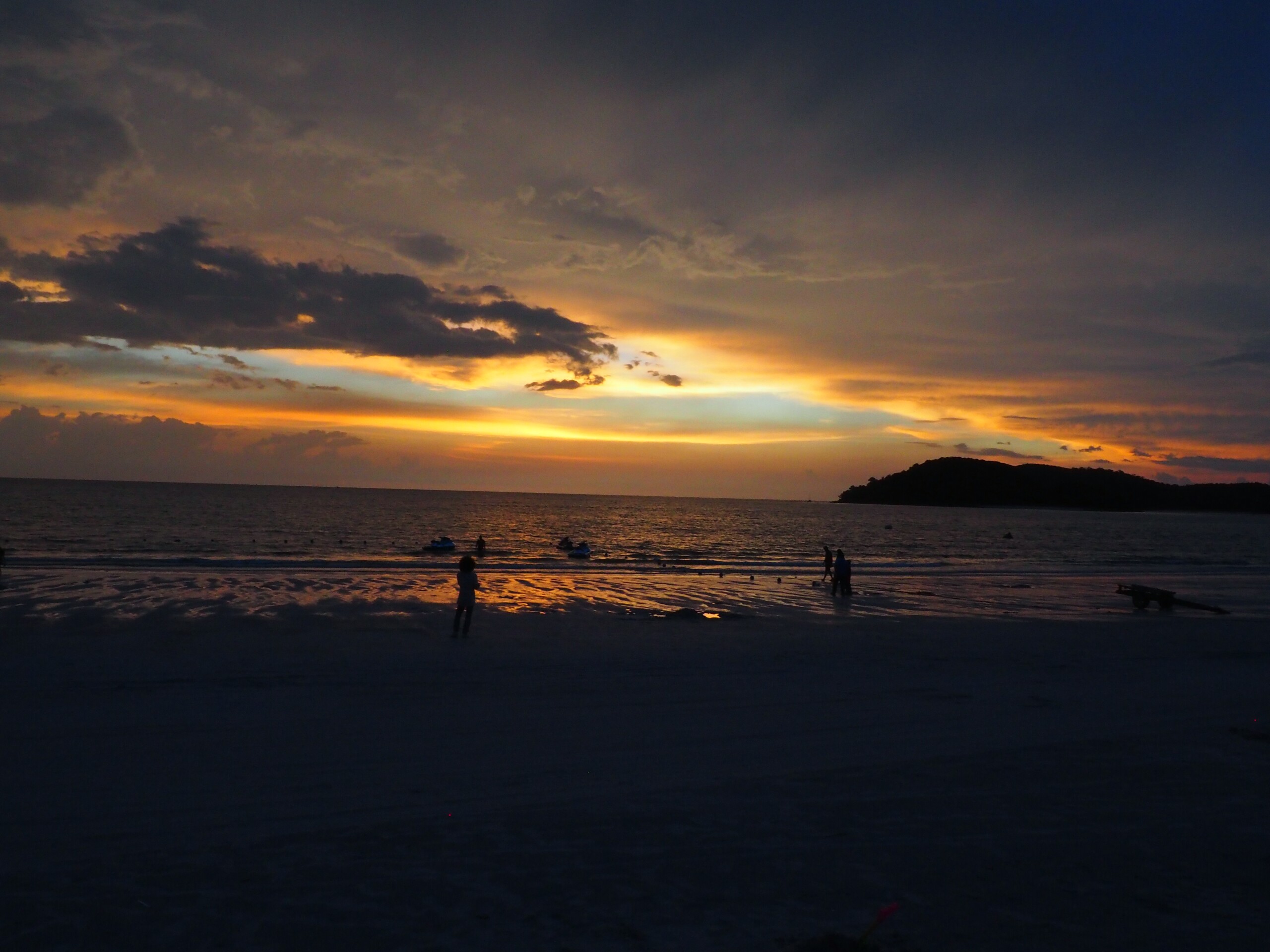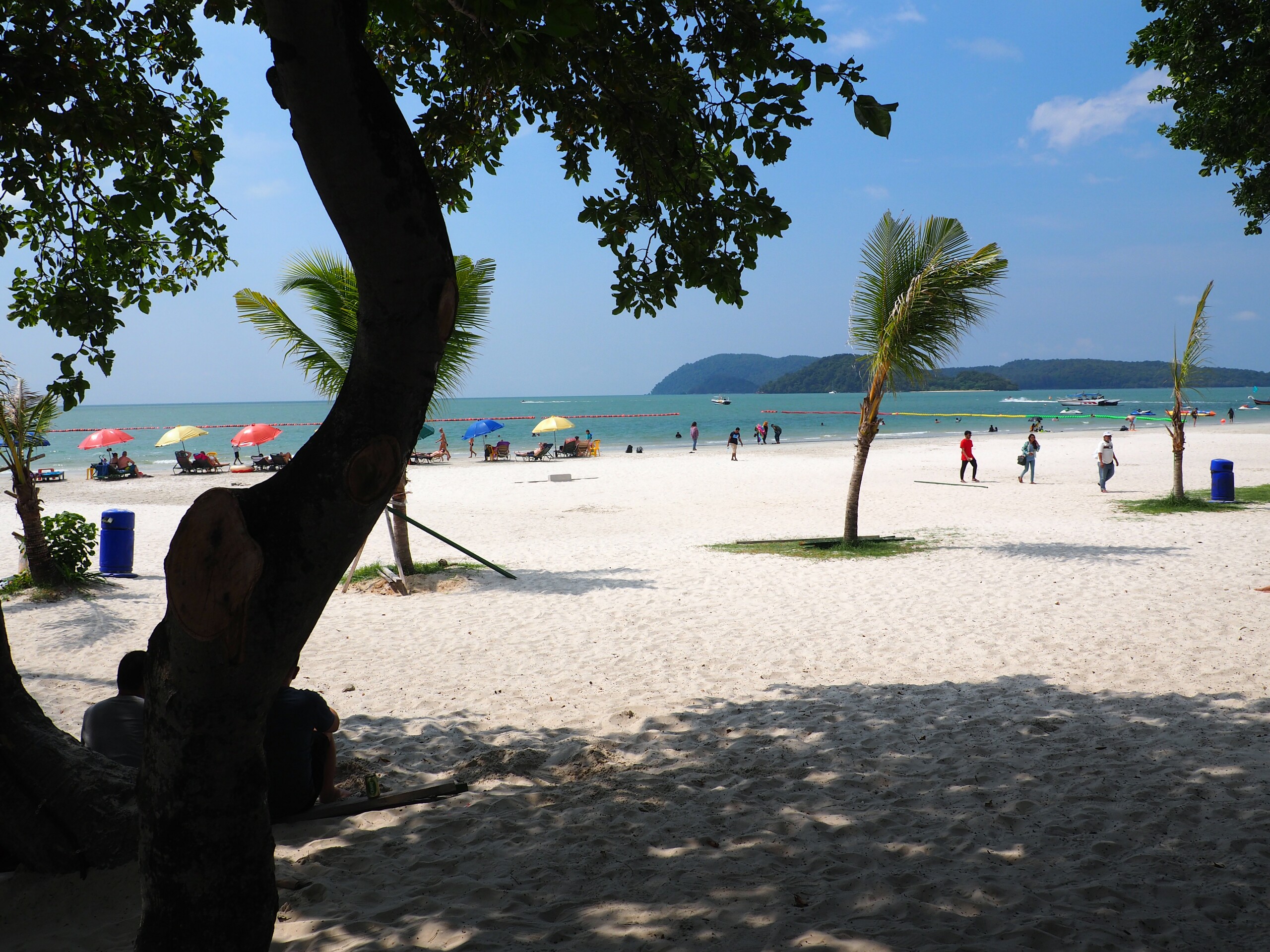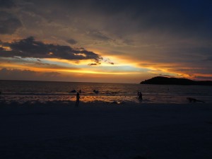 Und nach einer kurzen Taxifahrt und ein wenig Verwirrung bis wir im richtigen Hotel eingecheckt haben, liegen wir also jetzt am Strand und es ist der 24. Dezember, der Heilige Abend. Wenn man sich jemals gefragt hat, wo Weihnachtshasser (zu denen wir uns jetzt *nicht* zählen) Weihnachten ohne die typisch westliche Totalbeschallung durch Lieder, Konsum und Beleuchtung verbringen können, wir haben jetzt eine Antwort. Auf einer asiatischen Insel mit hauptsächlich muslimischen Einwohnern und zu dieser Zeit hauptsächlich asiatischen Touristen. Wenn auch nicht vollständig ausradiert, ist die Weihnachtsstimmung doch sehr dezent. Das höchste der Gefühle ist ein “Merry XMas” Schild in einigen Boutiquen und maximal jede 10te Strandbar spielt ab und an mal einen Weihnachtssong. Und wem das noch zu viel ist, dem wird bei “Let it Snow” in einer Strandbar bei gefühlt 35°C die Absurdität der Situation bewusst, zumindest wir konnten uns einen spontanen Lachanfall nicht verkneifen