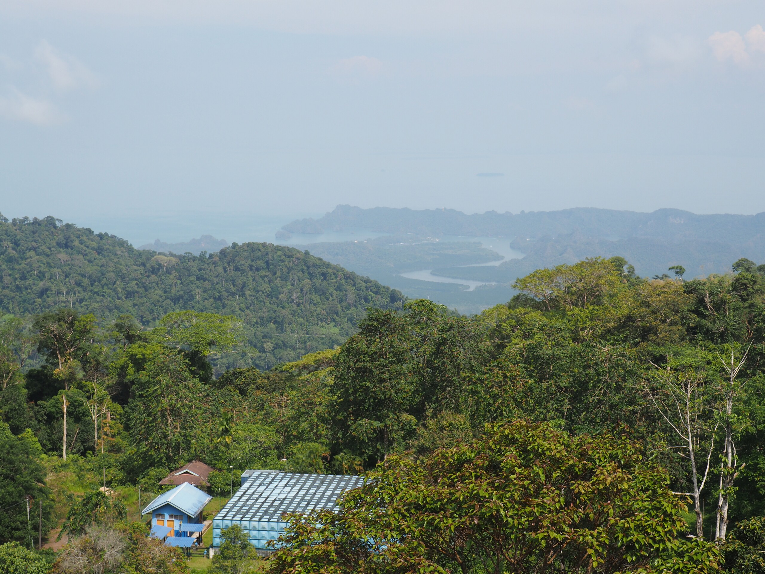 . Unser ganz persönliches Highlight ist die Fahrt mit dem Roller auf den mit 823m höchsten Berg der Insel (Gunung Raya), denn hierher verirren sich nur sehr wenige Touristen und es gibt auf dem Weg haufenweise Tiere, insbesondere Makaken und Brillenlagure zu bestaunen. Vor allem letzteren mit ihren riesigen Augen könnten wir wohl stundenlang zusehen ohne Langeweile zu bekommen. Neben einigen Stränden und Tempeln, besuchen wir noch “das” touristische Highlight der Insel, die Fahrt mit einer Gondel zur sogenannten SkyBridge. Auch wenn uns das Wetter ein wenig im Stich lässt und es sehr wolkig ist, ist die Aussicht auf die Insel und deren Strände doch atemberaubend. Außerdem schaffen wir es durch einen dummen Zufall die komplette Schlange vor der Gondel zu überholen, was uns locker 30 Minuten Warterei einspart. Die netten Aufseher der Gondeln versuchen diese nämlich möglichst immer mit 6 Personen auszulasten und so kommt es, das wir schnell genug schalten. Eine der Damen läuft mit Walkie-Talkie und zwei erhobenen Fingern durch die “Express-Line” an welcher wir gerade vorbeikommen, sie schnappt sich uns und führt uns vorbei an der Schlange zur Gondel, an der eine 4-köpfige indische Familie steht und schon sitzen wir drin. Wenn man das vorher weiß, kann man diese Situation vermutlich sehr gut abpassen, denn auch bei der späteren Abfahrt sehen wir das mehrmals passieren.