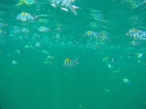So bleibt uns aber Zeit, die teils abstrusen Szenen am Pier zu beobachten. Eine Fähre nach der anderen wird mit Touristen vollgepackt und unserer Meinung nach völlig überfüllt nach Krabi geschifft. Das erste Boot ist eigentlich erst um 9:00, aber die erste Fähre legt um 8:30, die zweite um 8:45 ab und es geht weiter im 20-Minuten-Takt. Angestellte werden beschimpft, weil die 10:30 Fähre zu spät für ihren Flug am Nachmittag ist (“You’re fucking kidding me” ist noch einer der netteren Ausdrücke). Es wird geschupft und gedrängelt, um auf die nächste Fähre zu kommen, wir fühlen uns ein wenig an Katastrophenfilme erinnert. Und wir sitzen da und warten, dass wir unsere Tickets bekommen. Es ist dann auch bereits 9:15 Uhr, bis sich der Steg langsam aber sicher anfängt zu leeren und wir nochmal versuchen bei der netten Dame unsere neuen Tickets zu bekommen. Da sagt sie uns doch glatt: Phuket ist freigegeben, wir sollen auf die nächste Fähre. So ganz glauben können wir es noch nicht, aber machen uns mit einer größeren Gruppe anderer Menschen auf den Weg zu besagtem Steg. Zuerst werden wir aufgrund des nicht-vorhandenen Tickets nicht auf das Boot gelassen, aber nach einem Sprint zurück zur netten Dame heißt es, wir bekommen das Ticket auf dem Boot. Als wir zurück sind, ist die “Türsteherin” dann auch spurlos verschwunden.