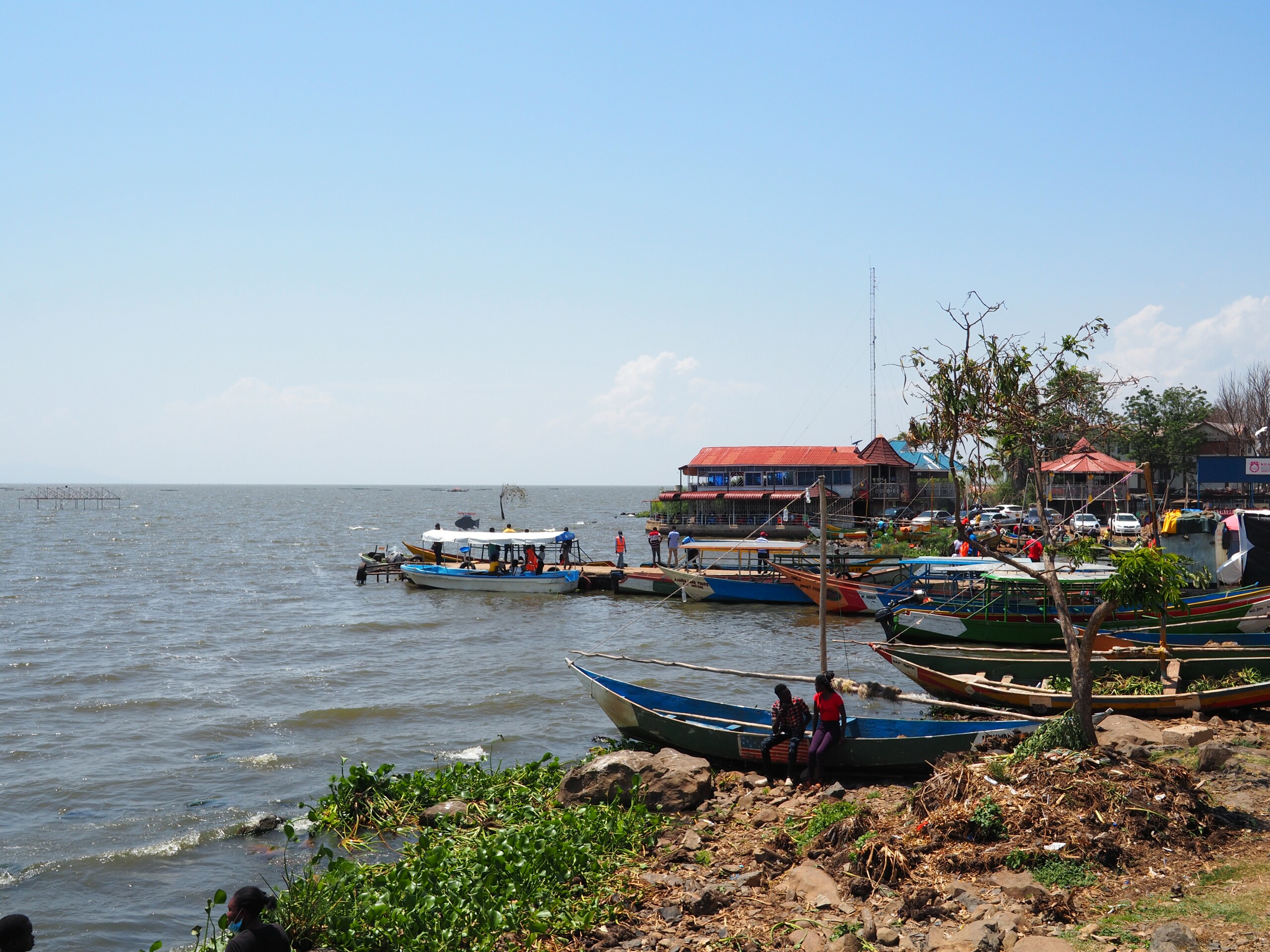 Nachdem das geklärt ist, lassen wir uns mit dem Motorrad noch zum Dunga Beach bringen, was sowas wie die lokale Bootanlaufstelle für Fischer und Tagestouren ist. Wir genießen direkt am See das geschäftige Treiben der Fischer und versuchen einen Kaffee zu ergattern. Witzigerweise stellt sich das als quasi unmöglich heraus. Im ersten Restaurant ist man noch ehrlich zu uns (und wir “begnügen” uns mit einem frischgepressten Saft), als wir uns dann aber explizit auf die Suche nach Kaffee begeben, wird die Sache witzig. Nachdem wir zu einem Restaurant geführt werden, wo es zumindest Päckchenkaffee geben soll, warten wir locker 15 Minuten bis die nette Bedienung uns nochmal vertröstet, weil sie erst noch Pulverkaffee kaufen muss. Nach weiteren 15 Minuten muss sie uns leider mitteilen, dass es im gesamten Ort keinen Kaffee gibt und sie uns stattdessen einen Tee machen kann. Der ist dann auch super lecker und für ca. 80ct/Liter quasi geschenkt, aber wir fragen uns schon, ob es den Aufwand jetzt wirklich wert war.^^