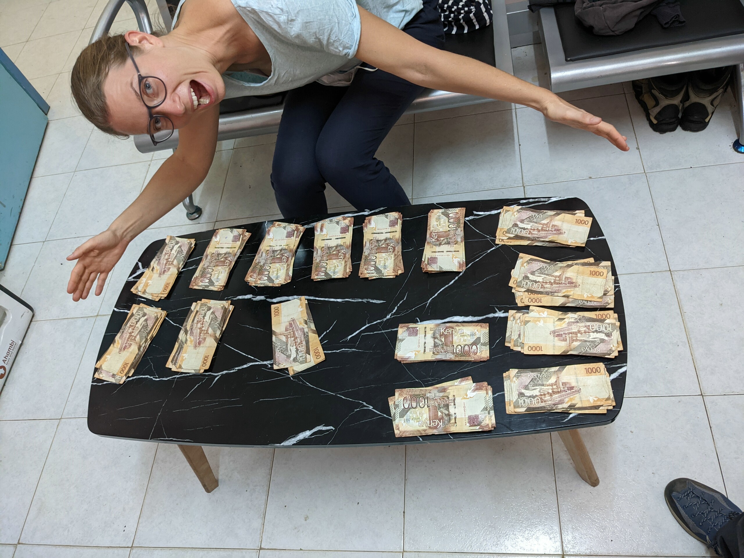 • In einem Auto-Matatu werden wir aufgefordert 2 Dollar extra zu zahlen, damit wir hinten nur zu dritt und nicht zu viert sitzen dürfen…Annoyed