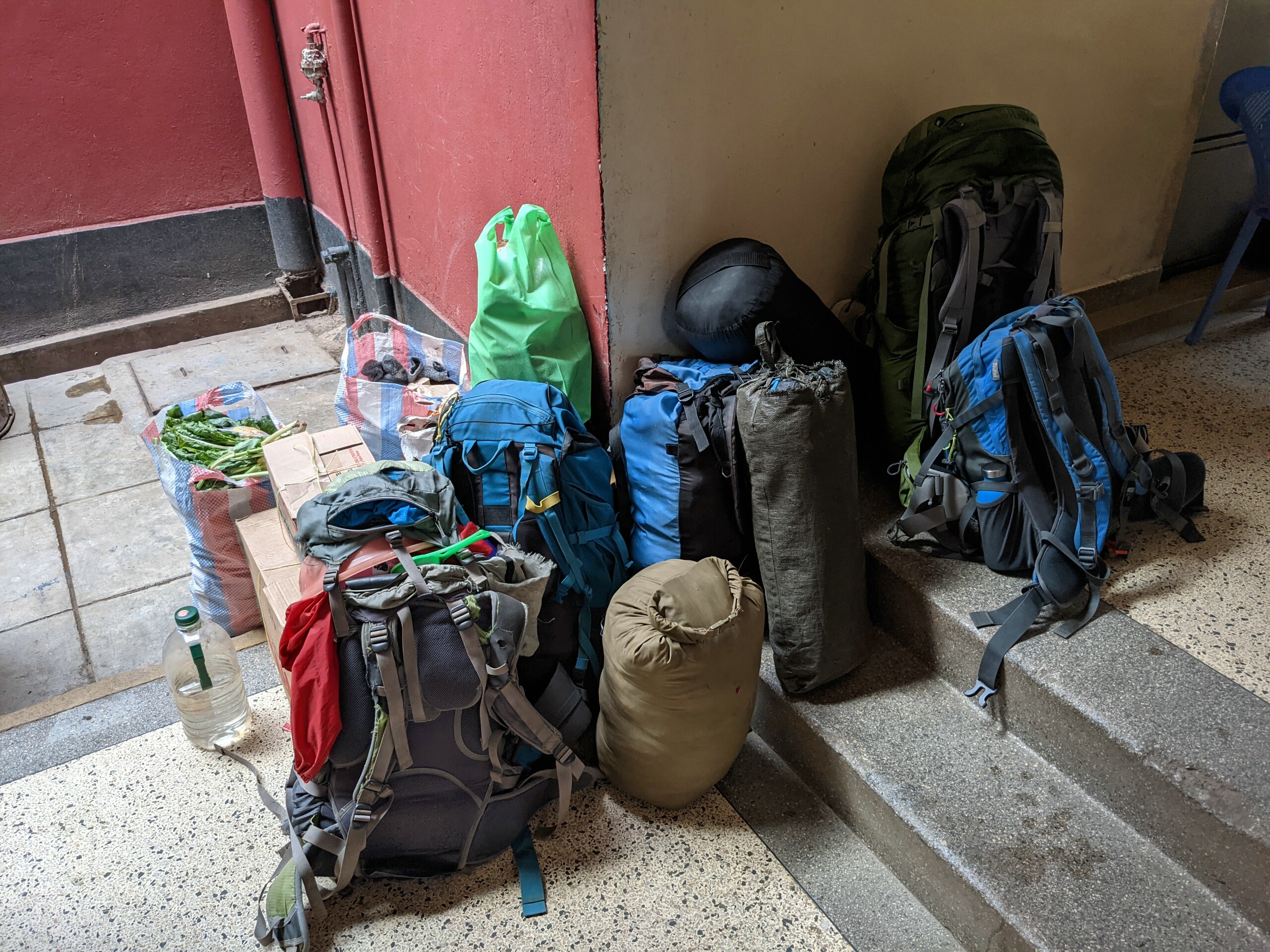 Am nächsten Tag geht es dann mittags los und wir kommen uns irgendwie vor wie die reichen Touristen aus dem frühen 19ten Jahrhundert. Mit uns kommen neben Eldad auch noch ein Koch und drei Träger, die 3 Rucksäcke mit Essen (und ihrer Ausrüstung) und einen unserer Rucksäcke von einer Hütte zur nächsten tragen werden. Etwas komisch fühlen wir uns bei dem Gedanken schon, nachdem wir dann aber am Eingang zum Nationalpark ein deutsches Pärchen treffen, die das Ganze mit einem Träger machen, der dafür aber rund 30kg schleppen muss, relativiert sich das schlechte Gewissen ein wenig. Einerseits schaffen wir gerade vier Jobs, und sie müssen auch “nur” 15kg tragen. Natürlich könnten wir uns auch teure leichte Ausrüstung kaufen und dafür weniger Träger beschäftigen. Das würde für uns den Preis kaum merklich verändern und es hätten weniger Menschen einen Job. Alles eine Frage des Blickwinkels und so befrieden wir uns ein wenig mit dem Gedanken gerade mit vollem Luxus und drei Mahlzeiten täglich auf einen 5000er zu klettern.