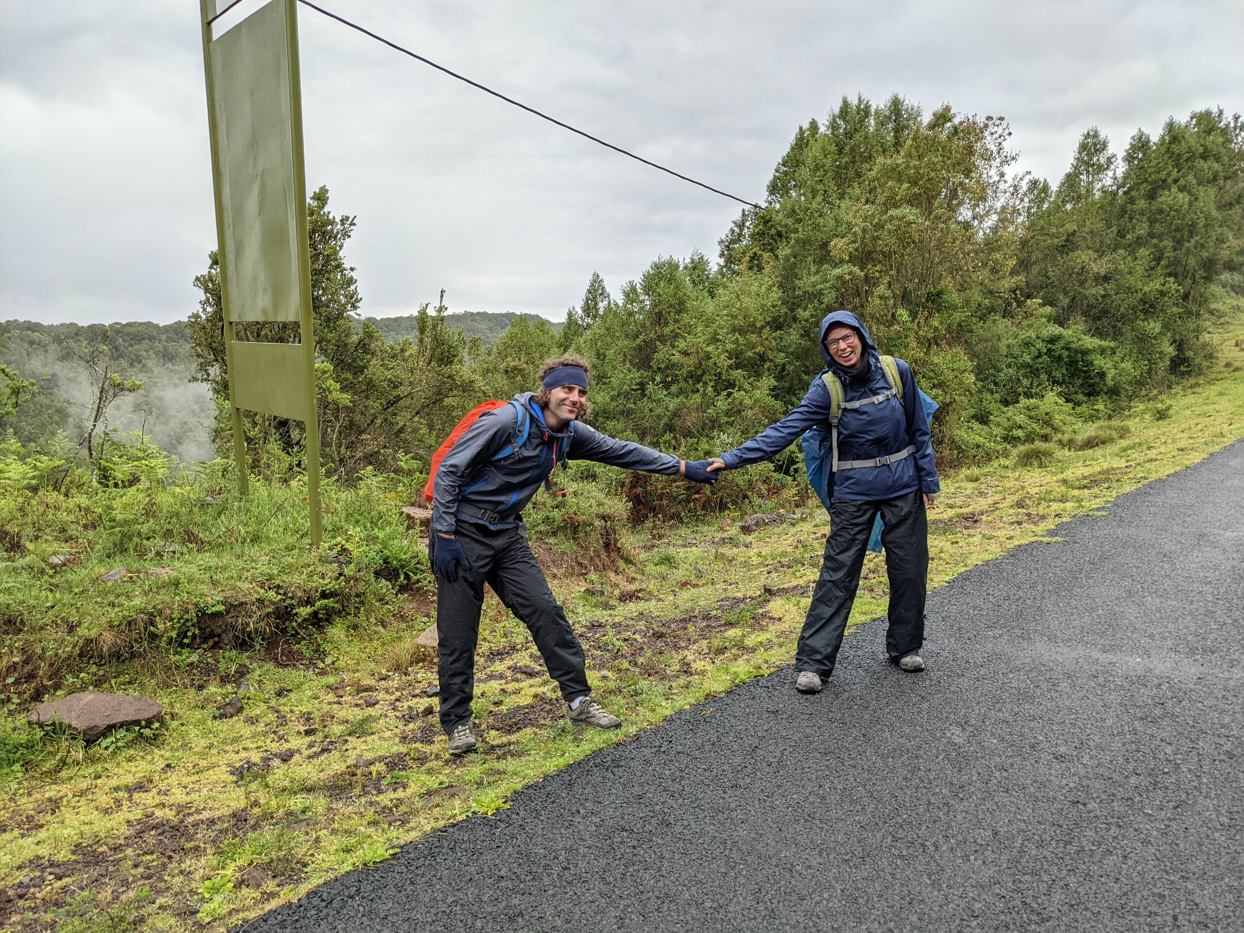 Gegen Abend wird es dann auch noch richtig schön und die Nacht kommt mit einem klaren Sternenhimmel, weshalb Tobi Eldad bittet mit ihm am nächsten Morgen nochmal auf den Berg zu steigen, um die Chance auf einen Sonnenaufgang auf dem Gipfel zu wahren. Und so geht es für Tobi mit Stirnlampe um halb 4 los auf den Berg durch (leider) dichten Schneeregen zum zweiten Mal auf den Gipfel und das Wetter wird an dem Tag auch einfach nicht besser. Es bleibt wolkig, verregnet und bitter kalt, vor allem auf dem Gipfel FreezingNach dem Abstieg haben wir noch rund 8 Stunden auf der “Chogoria Route” vor uns, die eigentlich eine wunderschöne Landschaft bieten soll. Davon ist aber nicht allzu viel zu sehen und nachdem sich der Regen nach 6 Stunden ein wenig beruhigt, bekommen wir zwar einen kleinen Eindruck davon, sind aber einfach froh als wir dann endlich an der letzten Hütte ankommen, unsere Sachen trocknen und uns in die Sonne legen können. Ein richtiges kleines Bergabenteuer Winking smile