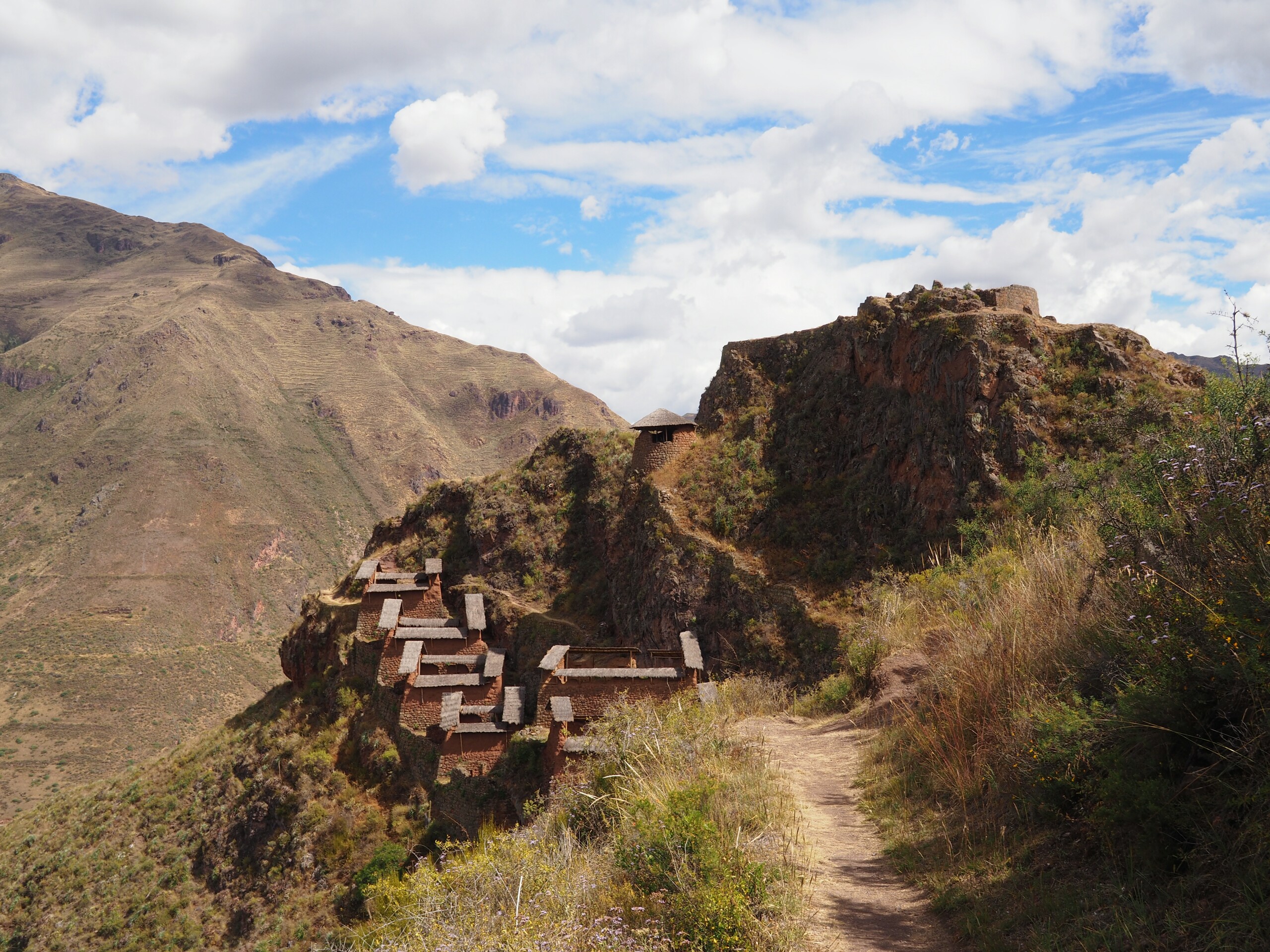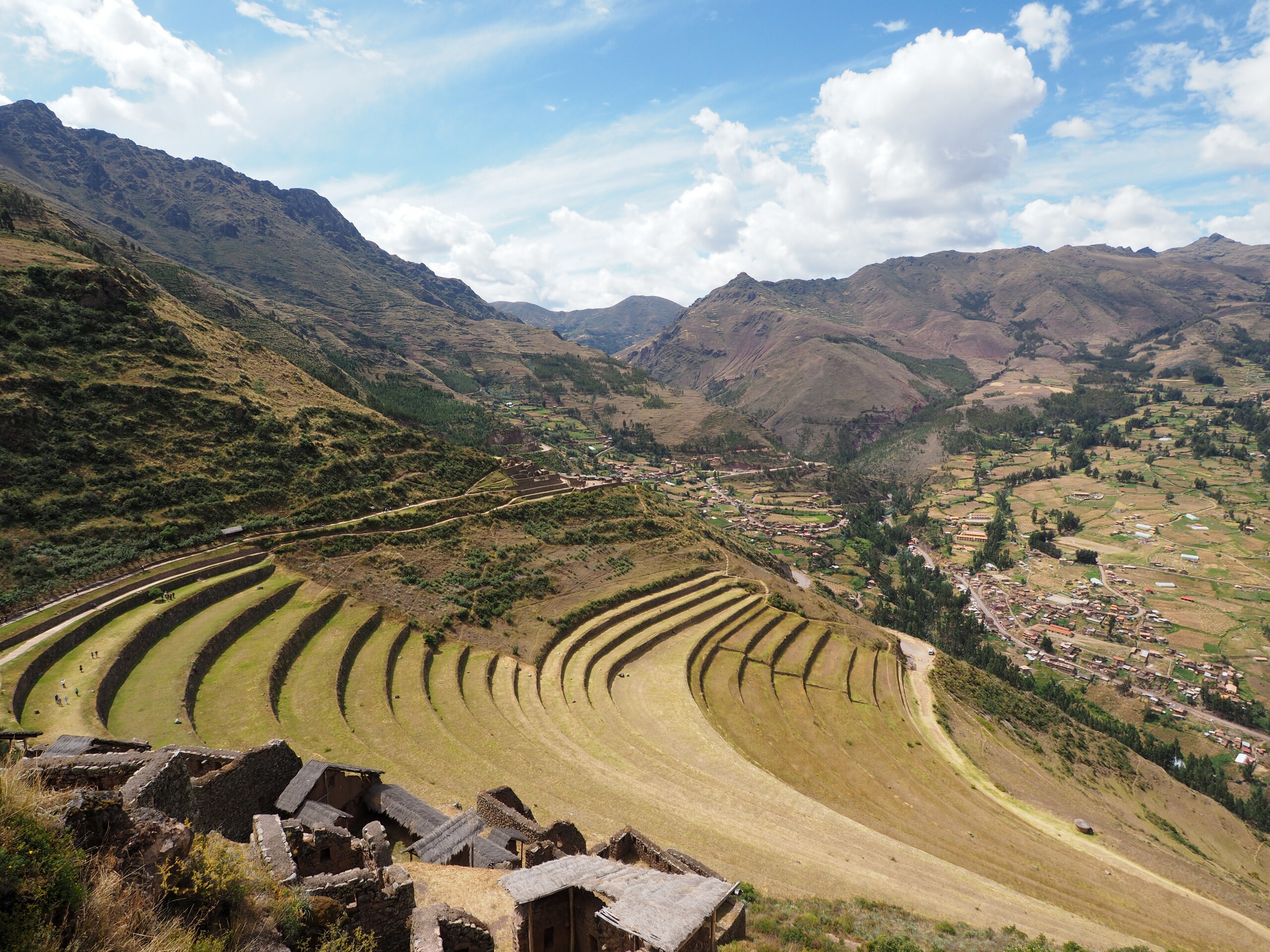Natürlich erkunden wir auch die Umgebung von Cusco, insbesondere das “Sacred Valley” in welchem verschiedene Inka-Ruinen zu finden sind. Wir möchten diesmal keine zu buchen, stattdessen erkunden wir es auf eigene Faust und suchen uns ein Collectivo nach Pisac (2715m). Ein richtig hübsches kleines Örtchen mit einer in den rückseitigen Berg eingebetteten riesigen Inka-Ruine im Hintergrund, welche wir über fast 3 Stunden erkunden. Zum Eingang müssen wir uns mit einem Taxi fahren lassen, laufen dann aber durch die Ruinen, über den Berggrat, durch in den Berg geschlagene Tunnel, vorbei an Inka-Lagerhäusern, –Wohnhäusern und Heiligtümern zurück zum Ort. Danach schlendern wir noch ein wenig über den hiesigen Markt und entspannen uns in einem netten Café, bevor wir zurück nach Cusco fahren. Heute ist nämlich Tobi mit leichtem Fieber und Magen-Darm gekennzeichnet…