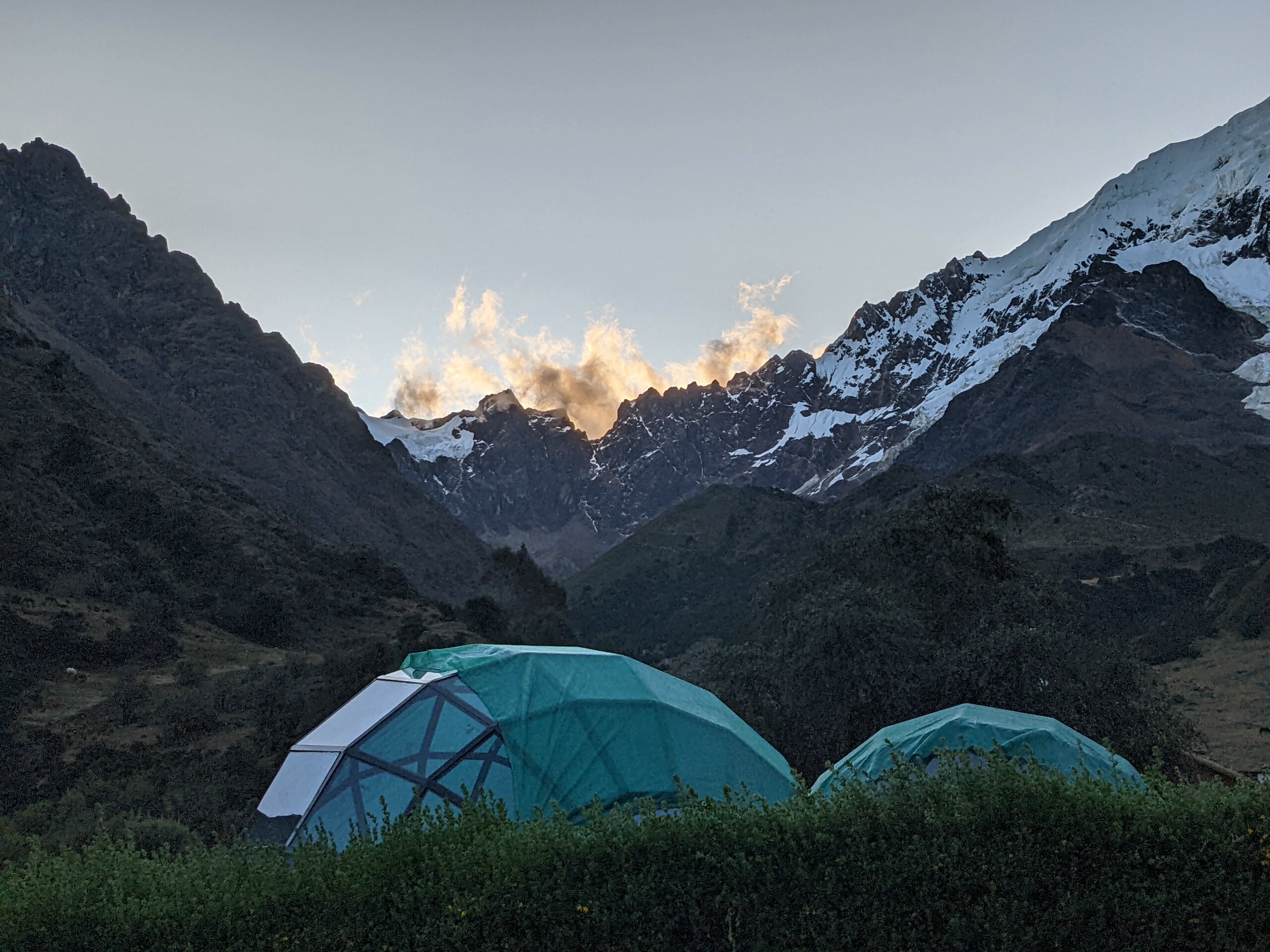 Am ersten Tag geht es nach dem Frühstück erstmal für drei Stunden zu unserem ersten Basecamp, den gläsernen “Sky Domes”, in welchen wir unter einer gläsernen Kuppel die Nacht auf 3800m verbringen werden. Nach dem Mittagessen – bei dem sich der Koch für uns auf vegan umstellt und auch in den nächsten Tagen immer wieder tolle Sachen für uns auftischt – geht es zunächst zum nahegelegenen Humantay Lake, ein kleiner See auf 4400m Höhe. Die erste Belastungsprobe für Kerstins Höhenkrankheit, aber diesmal geht alles gut, nur die beiden Holländer haben so mit der Höhe zu kämpfen, dass sie den Nachmittag im Camp bleiben.