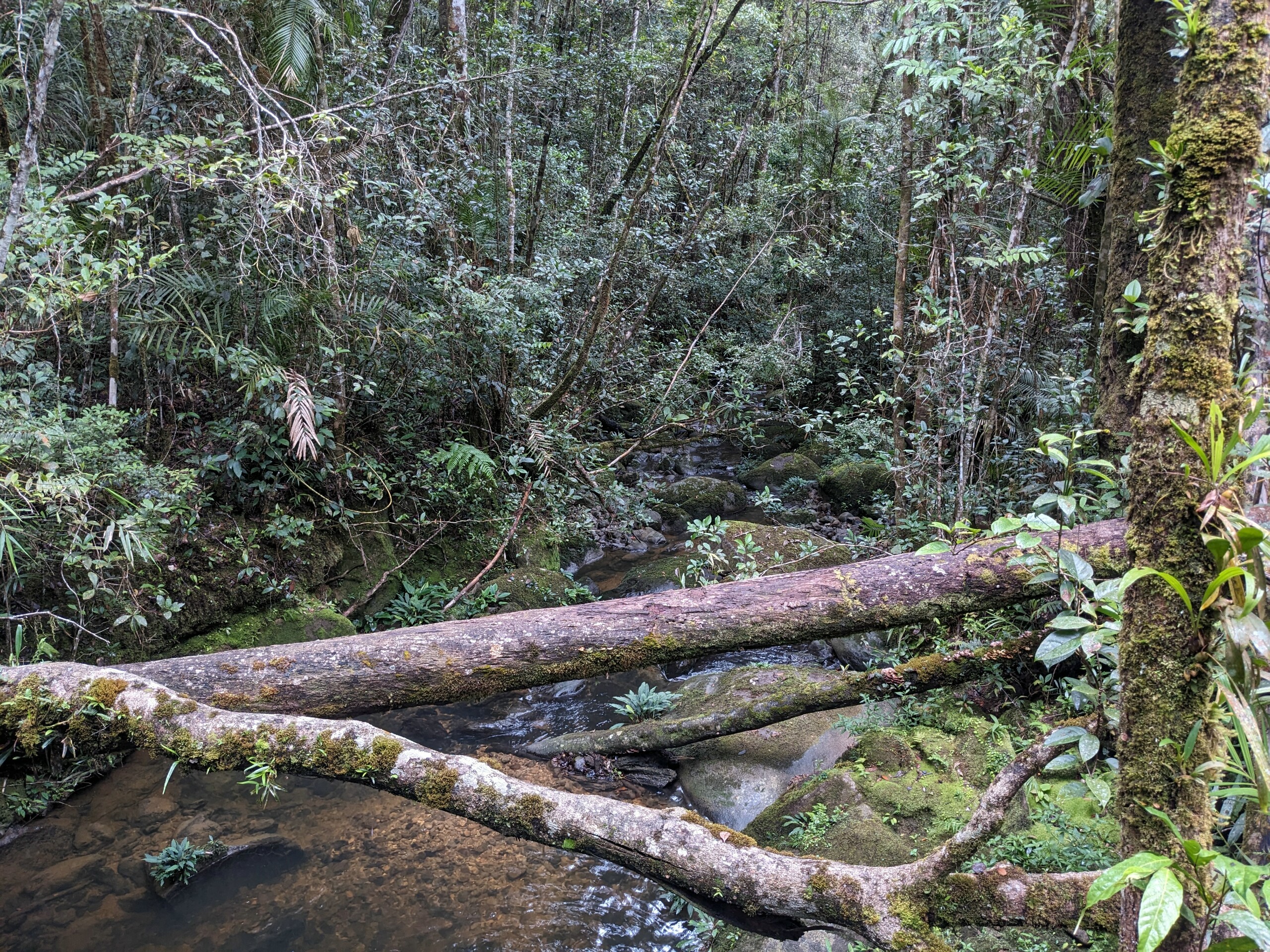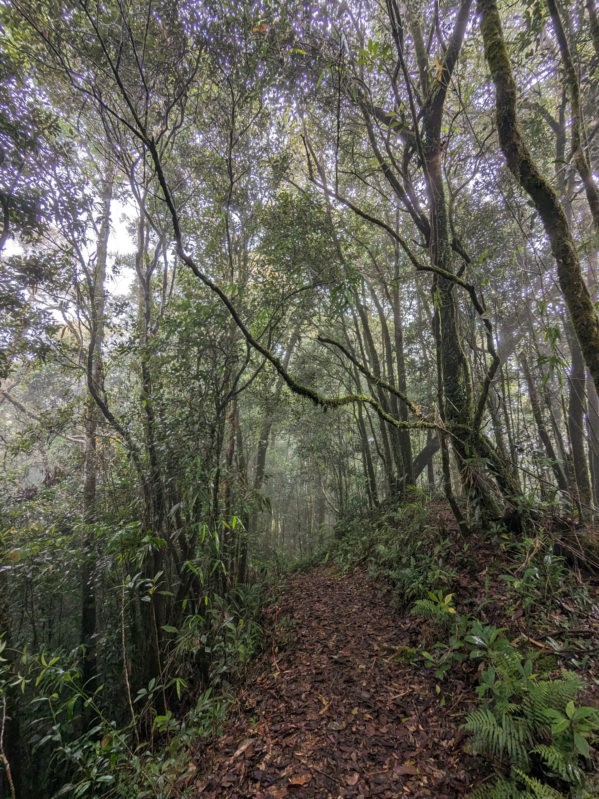 Once we arrive at the mountain, we unfortunately realize that the weather is not really suitable for an ascent. It kept raining briefly and the mountain was obscured by fog and clouds. So we make do with a short half-day hike along the hiking trails in the park. The landscape and the rainforest are simply beautiful despite (or perhaps because of) the rainy weather, and at the end we are even led to the exit by a couple of dogs