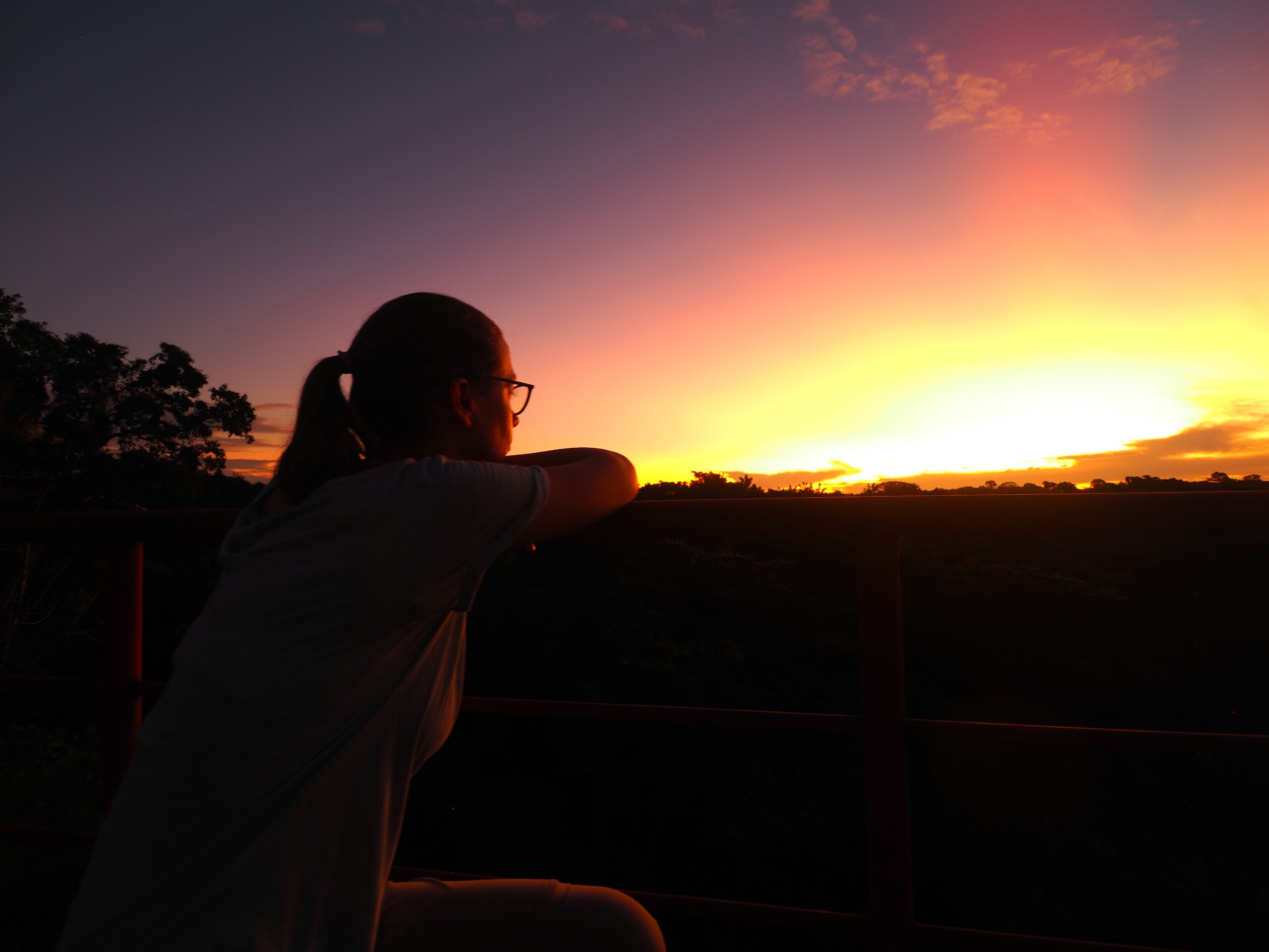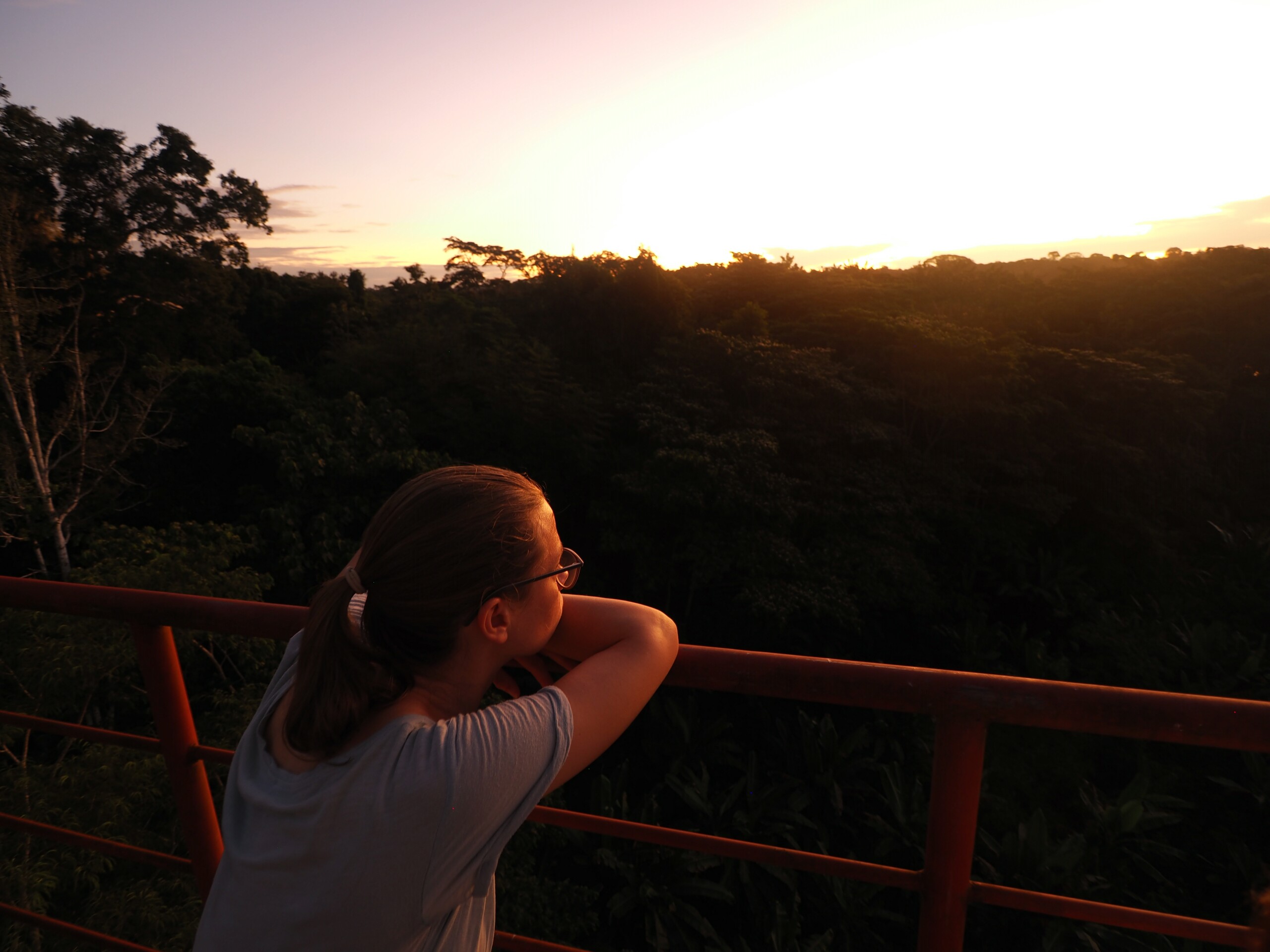Abends sitzen wir dann auf einem rund 30m hohen Turm und beobachten den Sonnenuntergang und den aufziehendenden Sternenhimmel über dem Regenwald.
