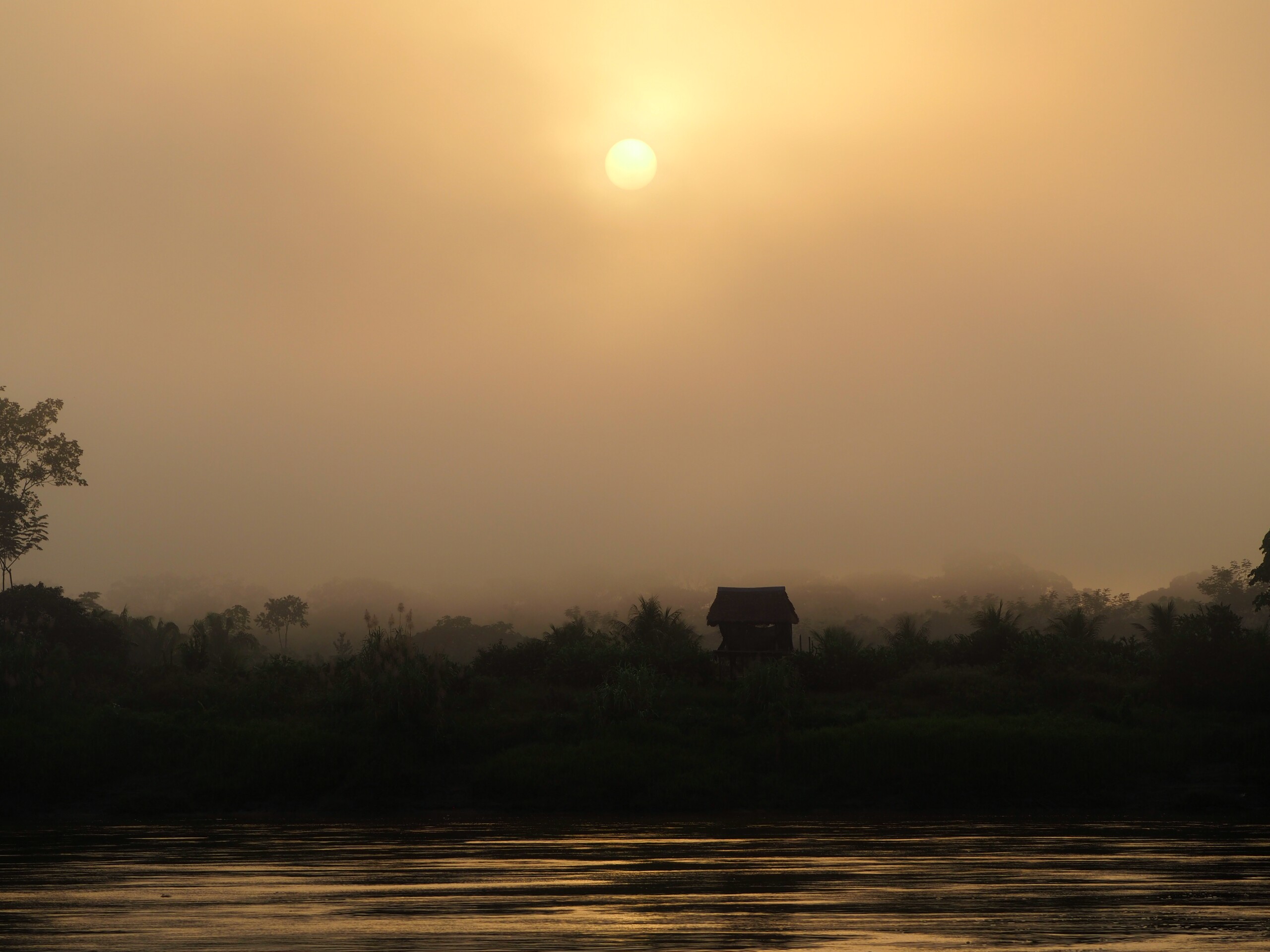Da unser Bus nach Puerto Maldonado verspätet ist, ist irgendwas mit dem Transfer zu unserer Dschungeltour schiefgegangen und wir müssen eine Weile am Busterminal warten. Aber nach ein paar Telefonaten werden wir dann irgendwann aufgegabelt und ins Stadtzentrum gebracht. Dort haben wir Zeit für einen Kaffee und um ein paar Medikamente gegen Tobis Stimmverlust zu besorgen bevor wir in einen Van steigen, am Rio Tambopata in ein Boot verfrachtet und zu unserer ersten “Amazon Lodge” gebracht werden. Wir sitzen mit zwei Amerikanern (63-jährige Mutter + 30 jähriger Sohn) “im Boot” und schaffen es kaum uns nicht alle 10 Minuten augenrollende Blicke zuzuwerfen. Insbesondere der Sohn macht echt jedem Klischee alle Ehre; wir haben eigentlich nur Mitleid für ihren Tour-Guide übrig und hoffen, dass wir nicht zu viel Zeit mit ihnen verbringen müssen.