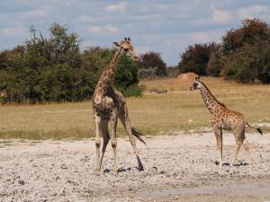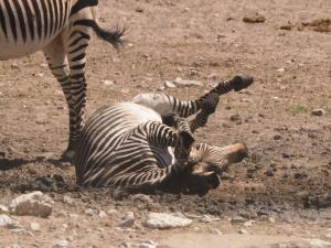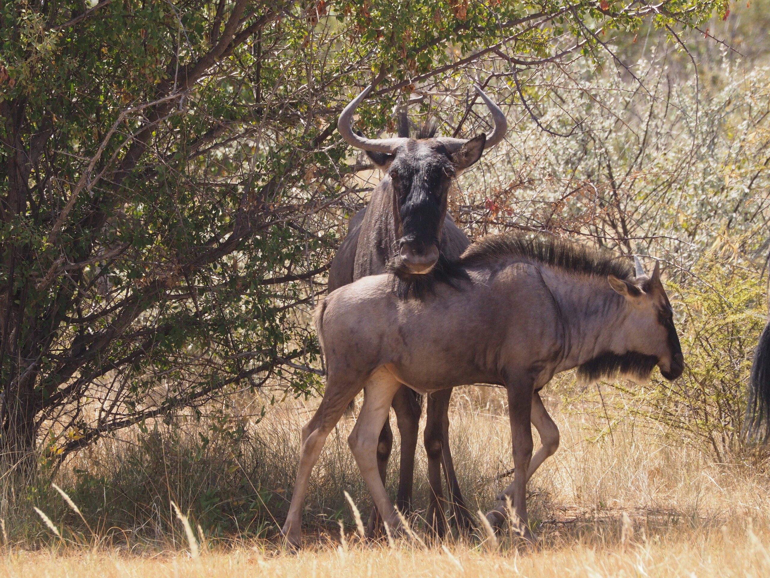 Der erste Tag hat noch nicht die “ganz großen” Highlights zu bieten, aber wir grooven uns erstmal mit Antilopen, Zebras und Gnus ein. Außerdem erspähen wir an einem Wasserloch eine Giraffe mit Kind, und einer Giraffe beim Trinken zuzusehen, ist echt ein Erlebnis. Zunächst wird vorsichtig die Umgebung abgecheckt, dann werden die Beine gespreizt, noch ein finaler Rundumblick und dann geht es in die Knie und es wird getrunken. Einfach köstlich!!!