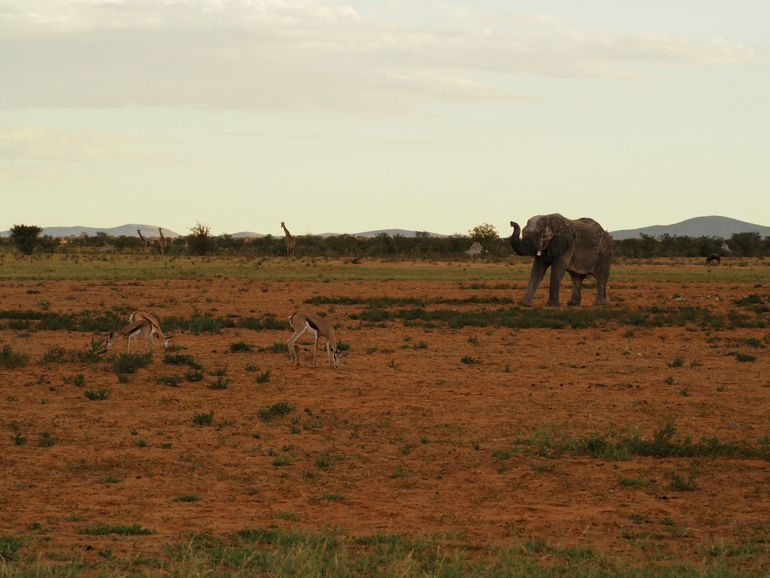 Wir planen von Westen nach Osten durch den Etosha Nationalpark zu fahren und entlang dieser Route auf Campingplätzen im Park zu übernachten. Dadurch haben wir drei volle Tage für unsere erste Safari ohne Guide, und die Taktik ist eigentlich recht einfach: Der Etosha ist übersäht mit natürlichen und künstlichen Wasserstellen, dort sollten die Tiere ja irgendwann auftauchen – vor allem morgens und abends – und wir werden einfach so viele wie möglich davon “abklappern”. Ob wir damit wohl an die Sichtungserfolge unserer Guides in Kenia anknüpfen können?… UND OB !!!!