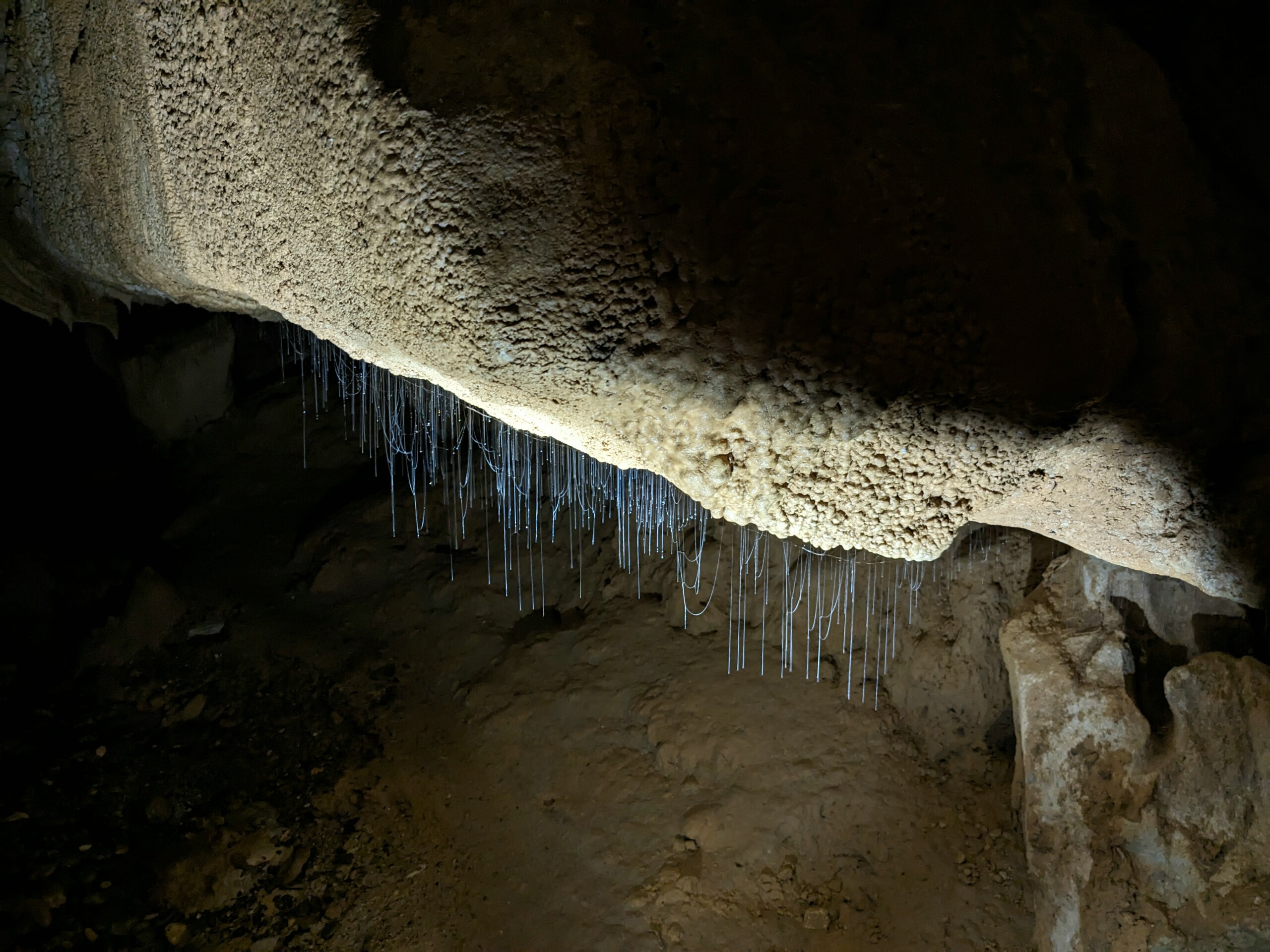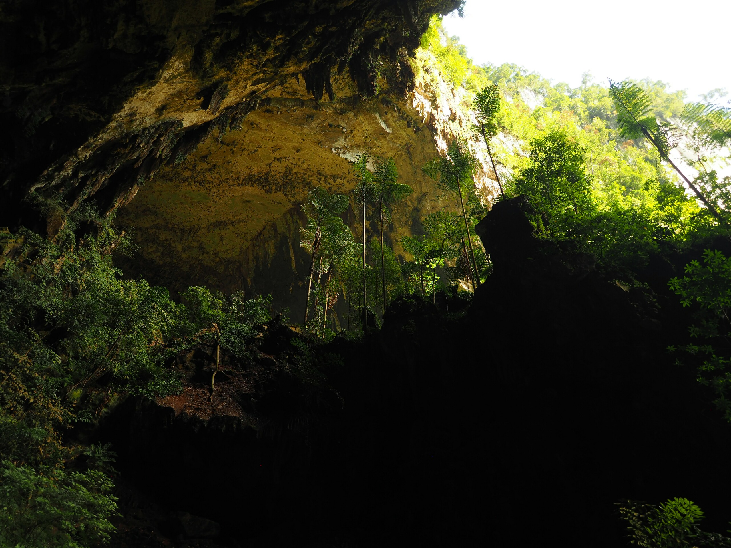 Am letzten Nachmittag lassen wir uns noch auf ein kleines Abenteuer ein, sogenanntes “Caving” in der “Racer Cave” – sie hat ihren Namen von der hier lebenden Racer Schlange. Caving bedeutet eine Art Klettersteig durch die unbeleuchtete Höhle, wir bekommen Sicherungsgurt, Helm und Lampe (wobei wir ersteres nur einmal alibimäßig benutzen, unser Guide scheint das als recht nutzlos zu betrachten ) Und so klettern wir durch die Höhle, immer wieder hoch und runter, zwängen uns durch Enge spalten und kriechen durch hüfthohe Löcher vorbei an duzenden von teilweise handgroßen Spinnen – was vor allem unsere französische Mitstreiterin überhaupt nicht lustig findet