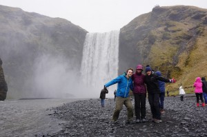 Trotz des Regens haben wir einiges zu Gesicht bekommen. Zuerst sahen wir uns den Wasserfall “Skogafoss” an, anschließend fuhren wir weiter zu unserem ersten schwarzen Sandstrand in Island. Hier war es neben Regen auch noch super windig, weshalb wir uns zwischenzeitlich fühlten als würden wir mit kleinen Nadeln beschossen. Um uns wieder ein wenig aufzuwärmen, gönnten wir uns anschließend einen Kaffee in einem Restaurant in Vik, wo uns dann plötzlicher Schneefall überraschte. Danach wurde es dann aber wir vorhergesagt richtig schön, weshalb wir die letzten 50 km bis zu unserem Gästehaus die wunderschöne Landschaft Islands endlich gebührend genießen konnten. Das verleitete uns dann sogar noch zu einem kurzen Abstecher zu einer Pferdeweide um ein paar Islandponys zu betrachten.